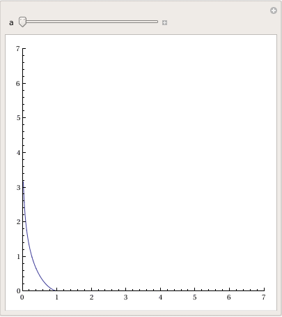 To plot tractrix curve, we use the following code which utilizes the Manipulate function: