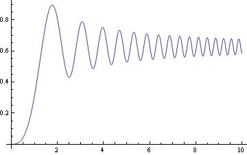 This indicates that y(6.5) approximately equal to 0.639918. We can improve accuracy by choosing the option PrecisionGoal.