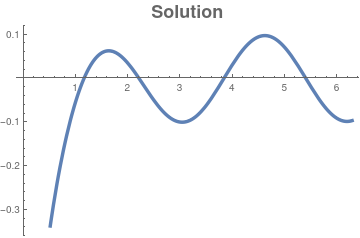 We plot the particular solution yp(t), given in formula (7.4), (in blue) along with the input function f(t) in black. As you can see, there is no relation of the particular solution and the input function.